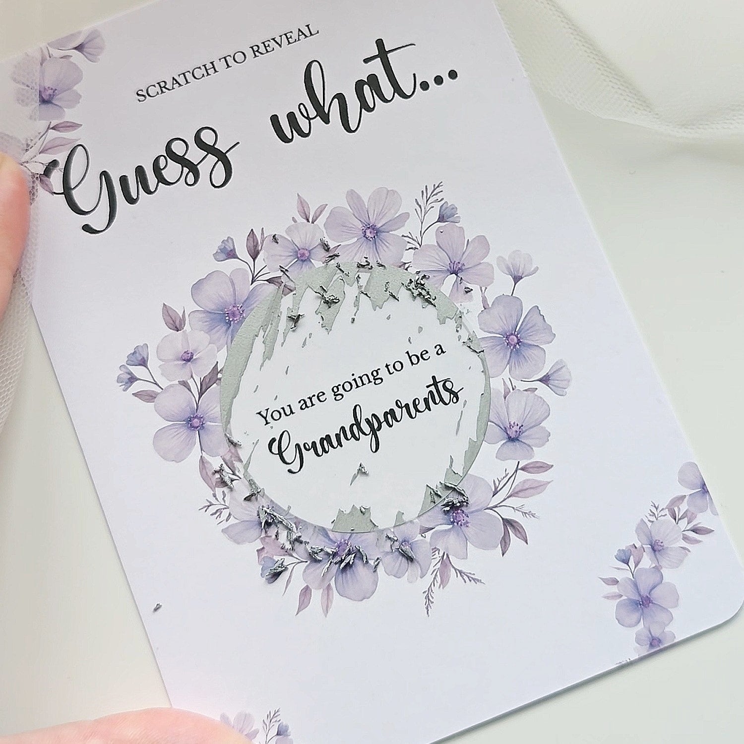 This personalised scratch-to-reveal card is a lovely way to announce exciting news. Whether it's a pregnancy reveal, grandparent surprise, or another special moment, this card makes it more meaningful.